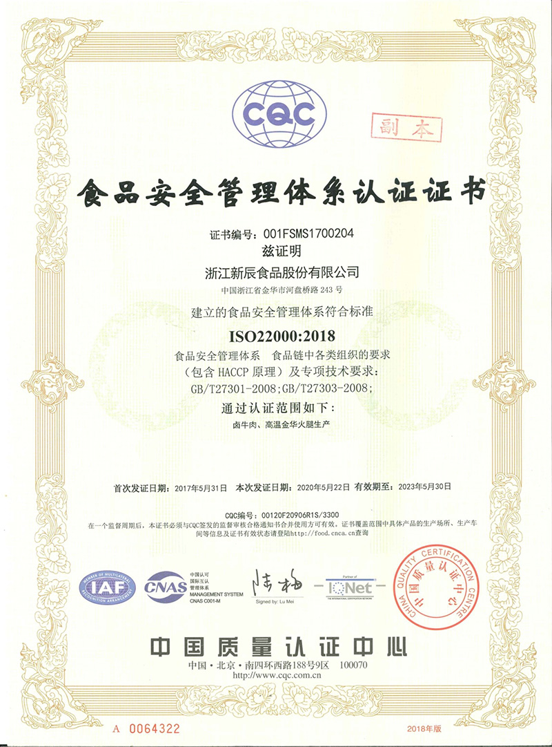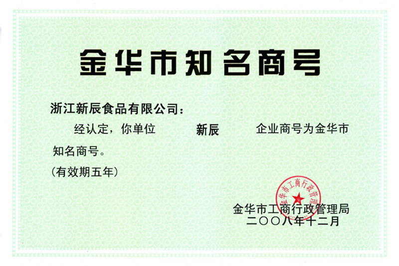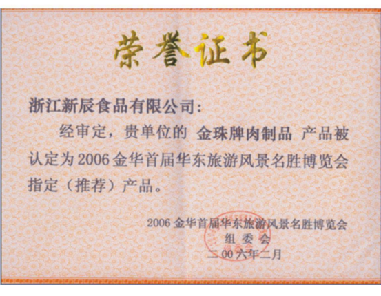 金珠牌肉制品產(chǎn)品被認定為2006金華首屆華東旅游風(fēng)景名勝博覽會指定(推薦)產(chǎn)品。